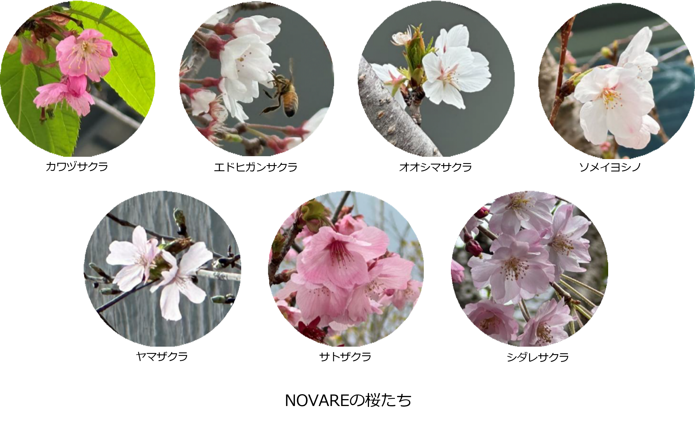 NOVARE敷地内には多数の桜が植わっております。本格的な春を迎え様々な花が咲き競っています。
